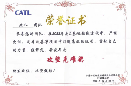 赢得荣誉 2022年12月22日,AG旗舰厅荣获宁德时代颁发的年度攻坚克难奖! AG旗舰厅的项目团队在2022年度Z基地拉线建设中,产能交付、成本改善等项目中打造了高效的运营,贡献了团队的力量,...
